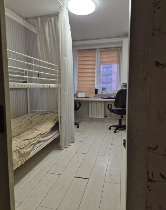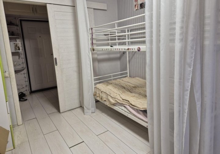 Светлая двушка, комнаты изолированны. В большой комнате встроенная кровать (раскладывается в двухспальную) в меленькой была детская. В квартире есть все для комфортного проживания.