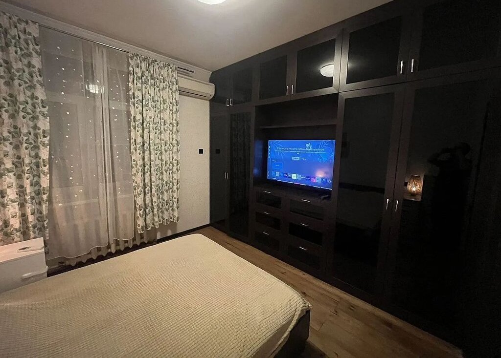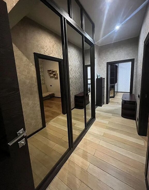 Квартира с высотой потолков 3,3 метра обескураживает своим простором и светом. 3 окна выходят в тихий двор, обеспечивая отличную инсоляцию внутреннего убранства. Ремонт выполнен по индивидуальному дизайн-проекту из качественных материалов: полы в жилых помещениях выполнены из элитного бельгийского дубового паркета, межкомнатные двери покрыты натуральным шпоном, установлены качественные и тихие окна, в каждой комнате имеется отдельная премиальная сплит-система, подогрев полов в коридоре, ванной и кухне с сенсорным управлением и возможностью программирования режимов работы, премиальная бытовая техника, включая посудомоечную и стиральную машину с сушкой, систему очистки воды (и подогрева воды на период летнего профилактического отключения), высокоскоростной интернет, телевизоры с диагоналями 55 дюймов. В коридоре и комнатах установлены огромные встроенные шкафы, создающие функциональные зоны хранения. В спальне установлена огромная двуспальная кровать с ортопедическим матрасом. В гостиной имеется комфортное рабочее место с большим письменным столом.