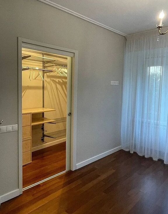 На полу паркет из экзотического дерева Мербау, все зоны с плиткой имеют подогрев. Окна выходят во двор.