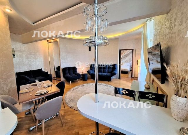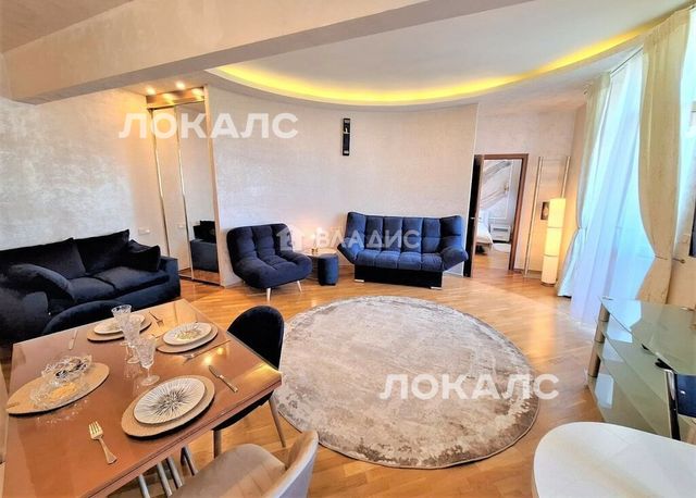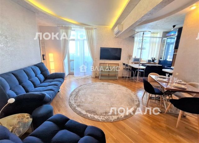 Предлагается для аренды НА ДЛИТЕЛЬНЫЙ СРОК просторная квартира в сталинском кирпичном доме на Ленинском проспекте недалеко от метро Шаболовская и Октябрьская. Светлая спальня с двуспальной кроватью с ортопедическим матрасом, комодом и шкафом-купе, огромная кухня-гостиная с мягкой мебелью и раскладным удобным диваном и креслами, обеденная группа с раскладным столом, барной стойкой и кухонным гарнитуром, на застеклённый балкон с настенной консолью и стульями ведут распашные, полностью стеклянные двери. Вместительная гардеробная, совмещённый санузел с угловой ванной и зеркальным потолком. Несколько сценариев освещения, высокие потолки 3м, окна выходят в зелёный двор. Территория около подъездов закрыта шлагбаумом, нет сквозного проезда машин, в подъезде консьерж.