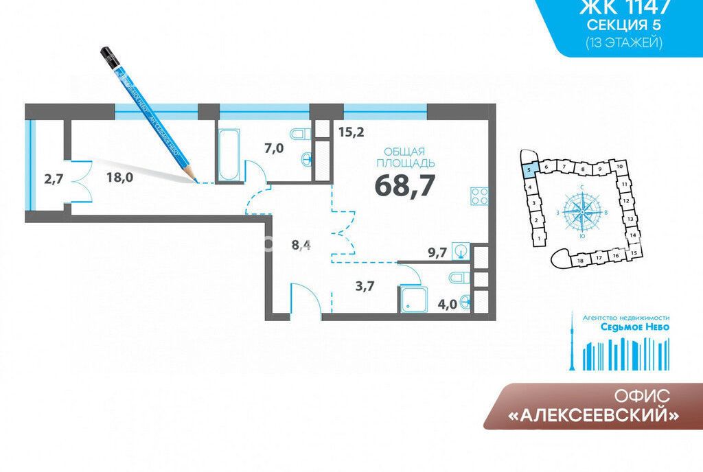 ЖК 1147! Квартира расположена в новом доме бизнес-класса в обустроенном экологически благоприятном районе (5минут пешком до парка Сокольники) со сложившейся инфраструктурой. В шаговой доступности магазины, аптеки, рынок, две станции метро Алексеевская, ВДНХ.