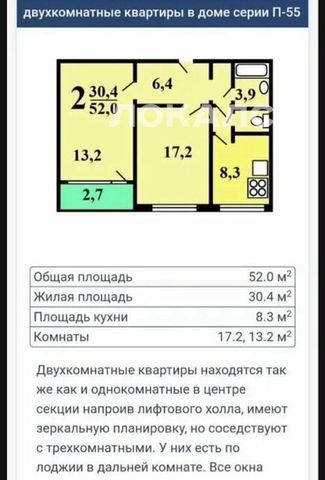 2-комнатная квартира: Москва, Мартеновская улица, 34 (52 м²)