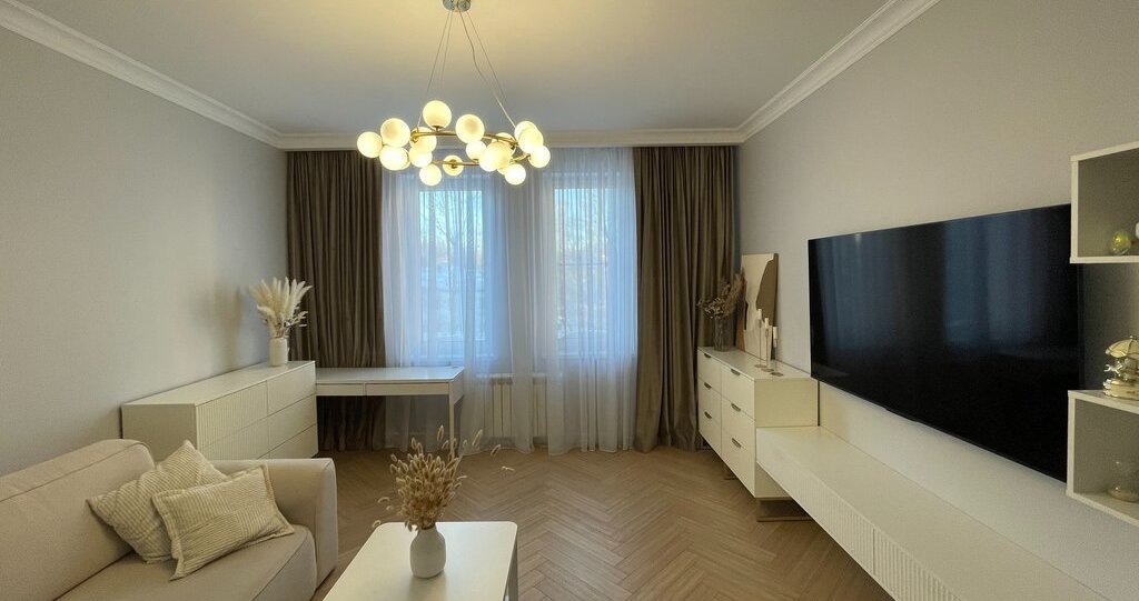 Продается светлая двухкомнатная квартира-распашонка с дизайнерским ремонтом, высокими потолками и видом на Терлецкий парк.