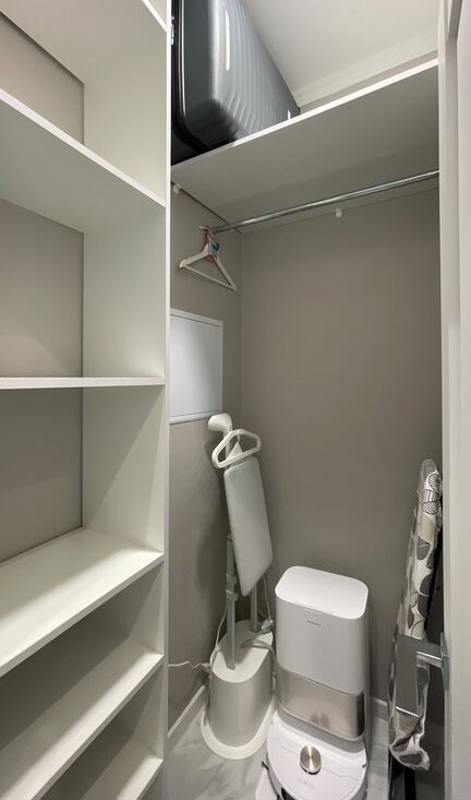 · Вместительная кладовая-гардеробная с розетками для техники(пылесосы и пр.) около 1.4кв.м.