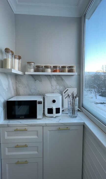 · Кухня-столовая: 9 м² с уютной лоджией 2.9 м² с видом на парк.