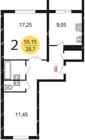 · Общая площадь: 54.9 м².