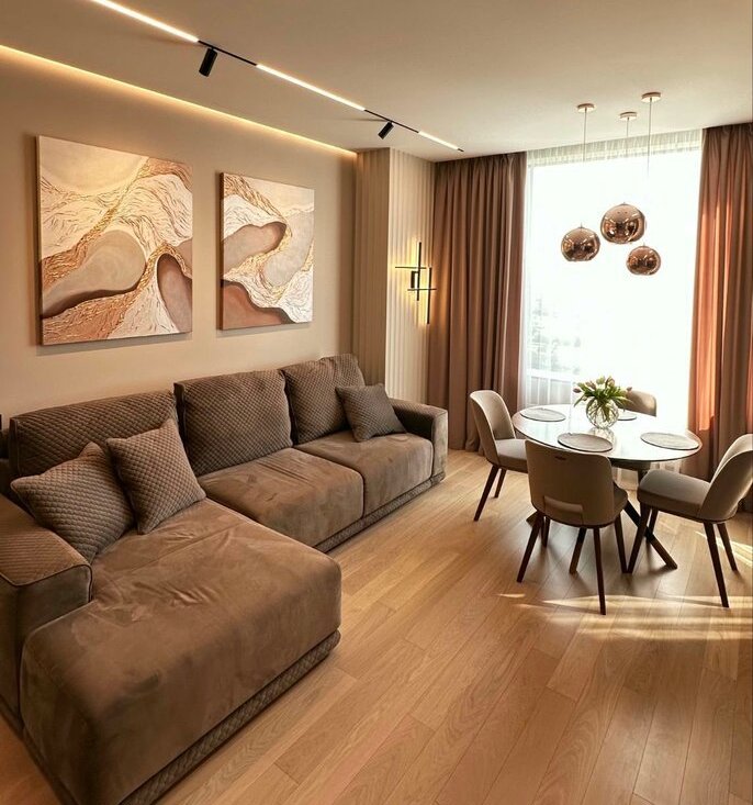 Продажа с мебелью и техникой. Квартира выполнена как качественный жилой объект с продуманной инженерией и долговечными материалами.
