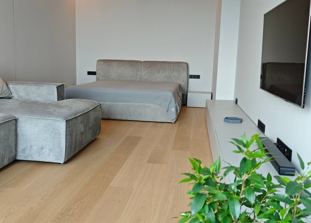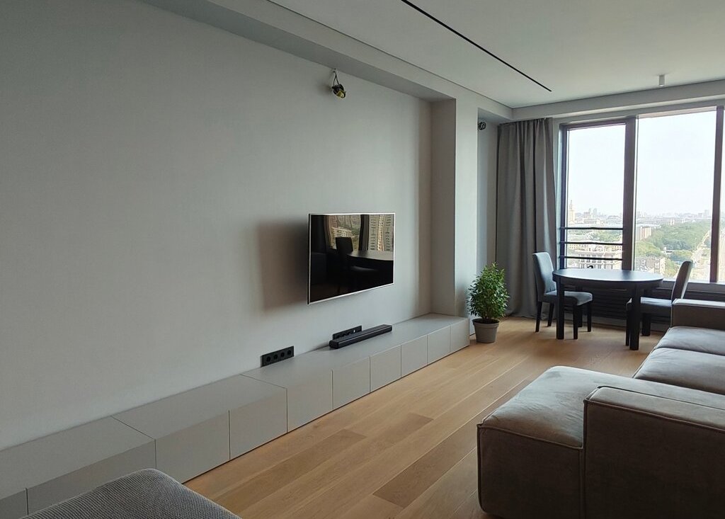 Свежий ремонт. Функциональная планировка в минималистичном стиле. Две изолированные комнаты 20 и 29 м. Два полноценных сан узла. Большой гардероб. Потолки 3 м. Плитка Parcelanosa, сантехника Villeroy & Boch, Noken, варочная Elica, паркетная доска дуб селект. Шумоизоляция стен, пола и потолков. Приточная система очистки воздуха с автоматическим контролем СО2, влажности и температуры.4 лифта и один грузовой лифт. Подземный паркинг. Круглосуточная охрана. Супермаркет Мираторг на 1 этаже.