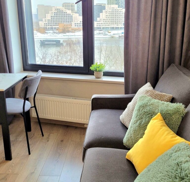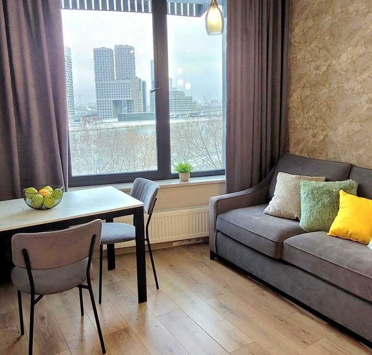 Современный ремонт, продуманная планировка и ощущение пространства создают комфортную атмосферу для жизни. Из окон открывается живописный вид на реку, который впечатляет в любое время суток.