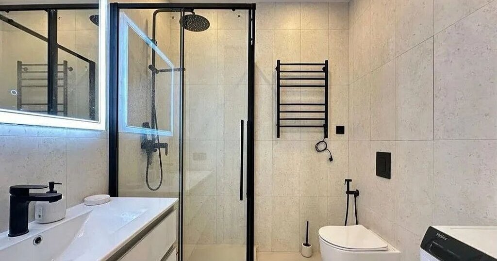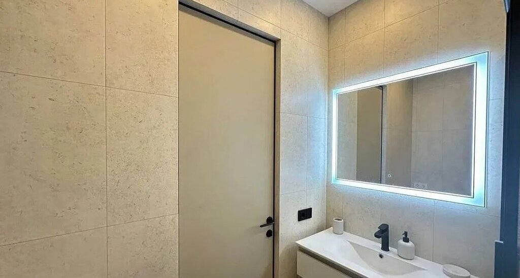 Санузел совмещенный, оформлен качественными материалами. В доме есть два пассажирских и один грузовой лифт, что обеспечивает удобство перемещения. Для автомобилей предусмотрена подземная парковка.