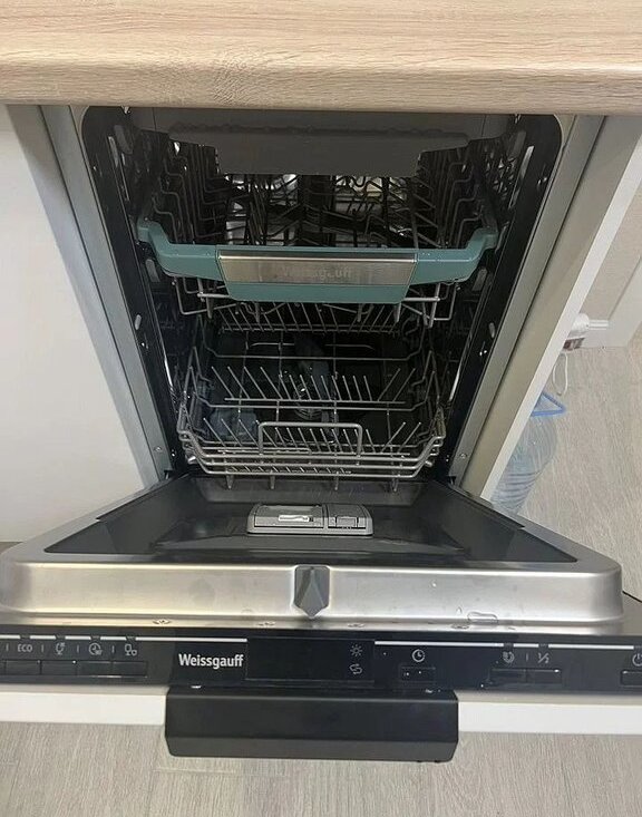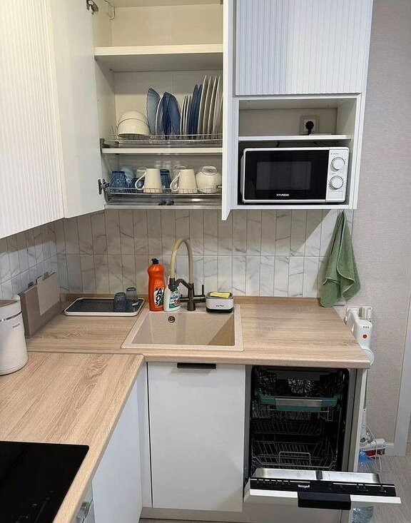 Кухня оснащена современной техникой: холодильником, посудомоечной машиной и микроволновой печью. Здесь также есть всё необходимое для комфортного приготовления пищи.