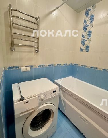 - Просторный раздельный сан узел с большой ванной, тумбой с раковиной и зеркалом, стиральная машинка Aeg.