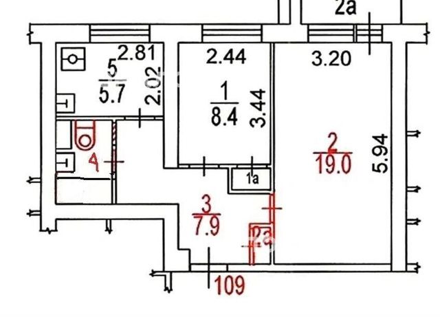 2-комнатная квартира: Москва, Нежинская улица, 23к1 (45 м²)