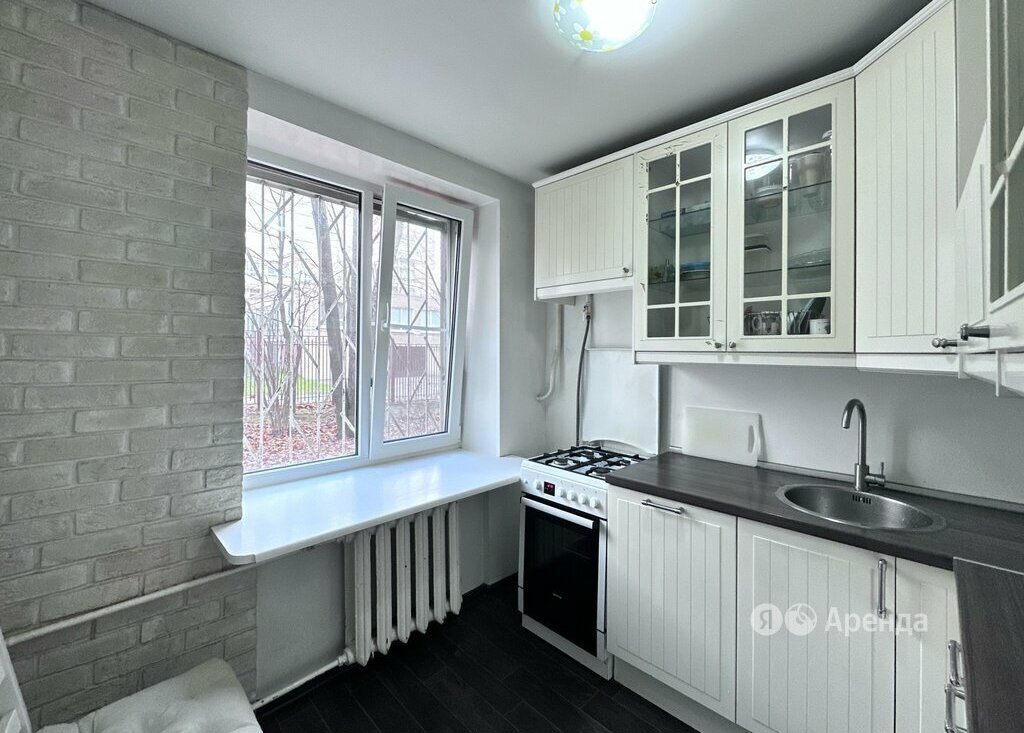Сдаётся 2-комнатная квартира площадью 43 кв.м. с косметическим ремонтом на 1 этаже в 5-этажном доме на срок от 11 месяцев. Из техники есть: