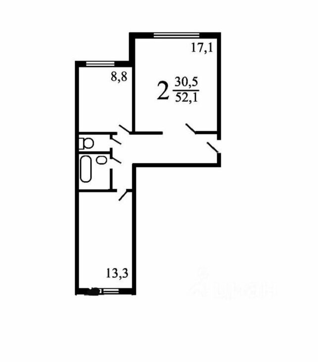 2-комнатная квартира: Москва, Норильская улица, 6 (52.1 м²)