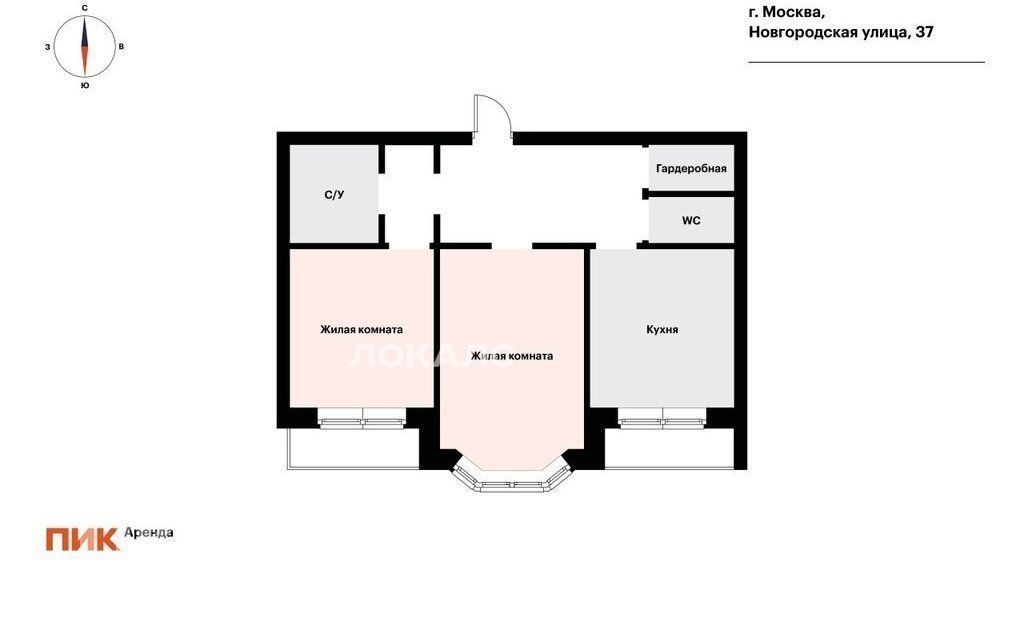 2-комнатная квартира: Москва, Новгородская улица, 37 (71.9 м²)