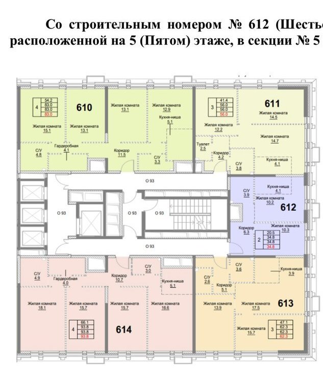 5 квартир на этаже.