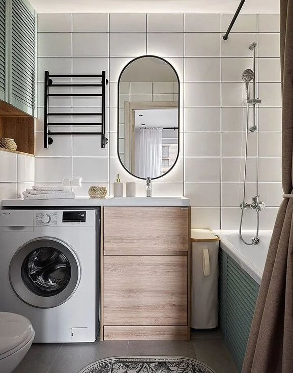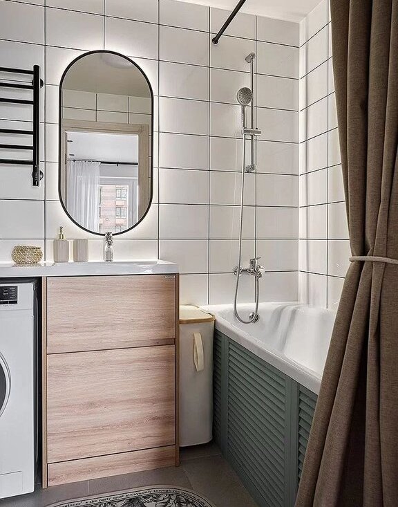 Cтильная евро-тpёшкa c 2 санузлами и кухнeй-гоcтиной 24 м² у метpo