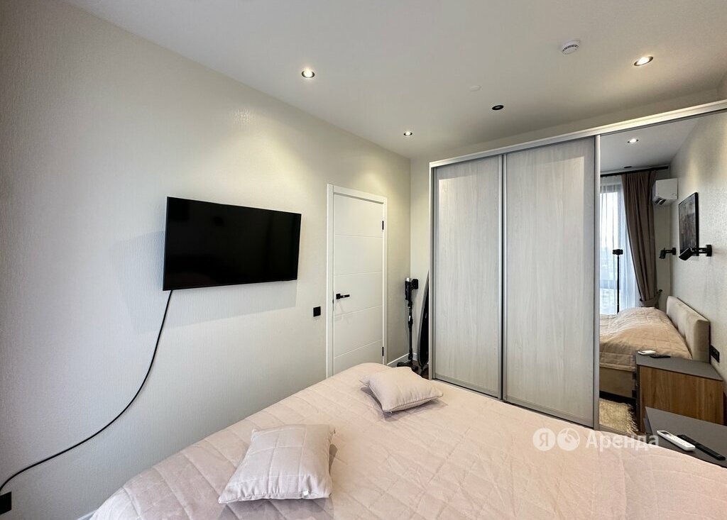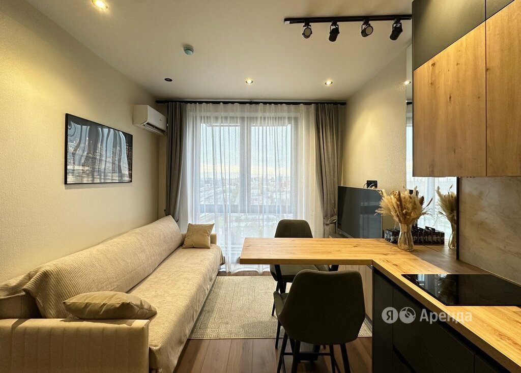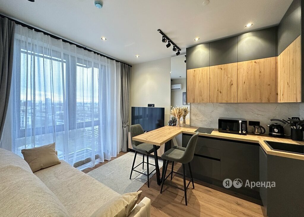 Сдаётся 2-комнатная квартира площадью 31 кв.м. с дизайнерским ремонтом на 23 этаже в 24-этажном доме на срок от 11 месяцев. Из техники есть: