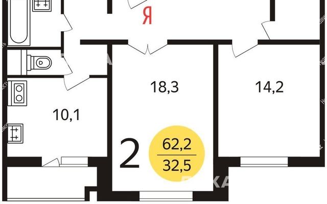 2-комнатная квартира: Москва, Олимпийский проспект, 26с1 (55 м²)