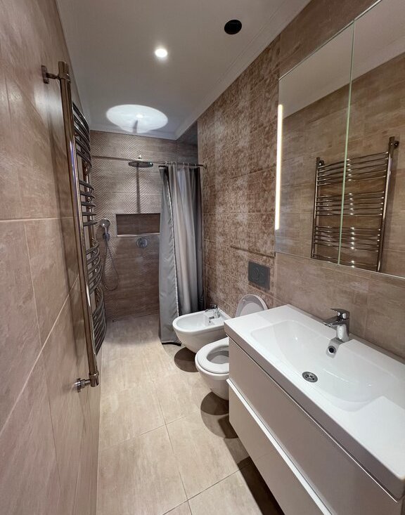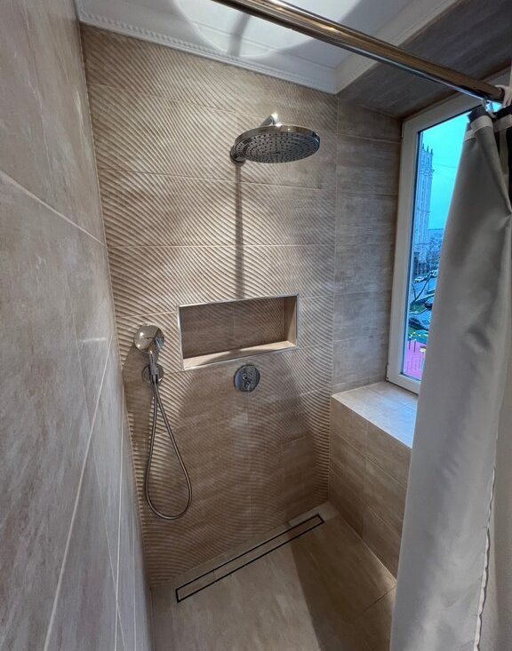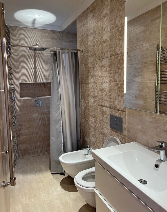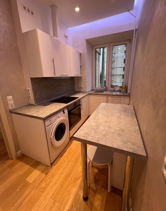 Квартира полностью обставлена необходимой мебелью: на кухне и в комнате всё готово для комфортного проживания. В вашей ванной комнате - современный открытый душ с щелевым трапом с окном, что добавляет атмосферы и удобство в повседневной жизни. Из техники в квартире имеются кондиционер, холодильник, стиральная машины - всё, что нужно для удобства и комфорта.