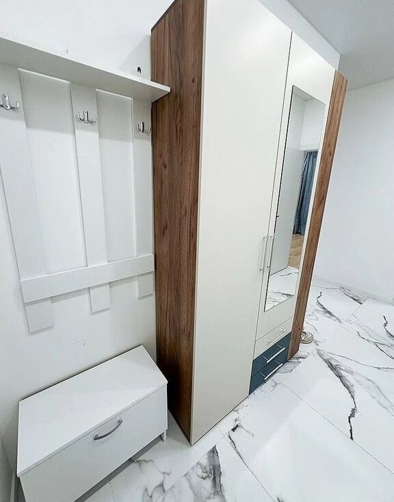 В квартирe eсть вся необходимая мебель и техника (варочная панель, вытяжка, холодильник,стиральная машинка, кондиционер, раскладной диван, двуспальная кровать с новым ортопедическим матрасом, полка для телевизора, рабочее место).