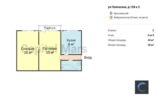 2-комнатная квартира: Москва, Палехская улица, 128к2 (44 м²)