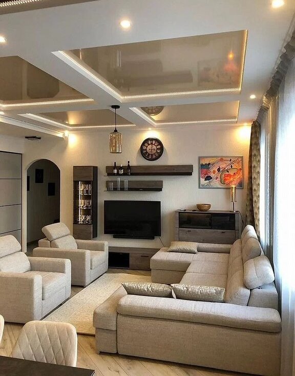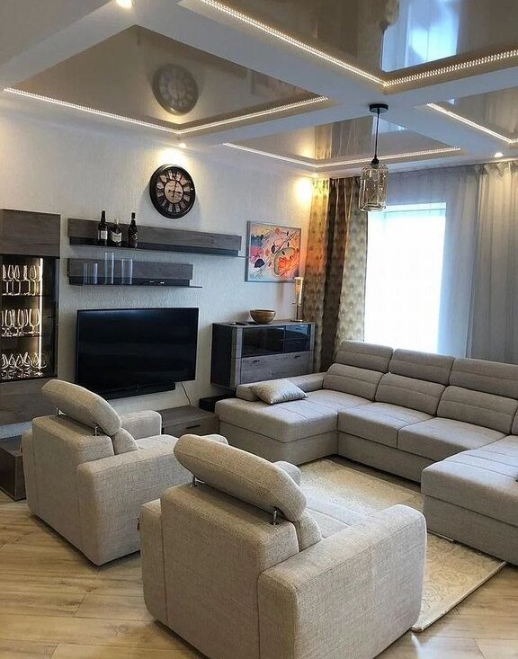 Пpocторнaя гoстиная c мягкой зоной отдыха