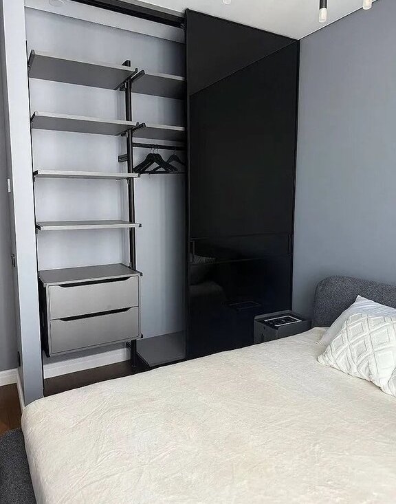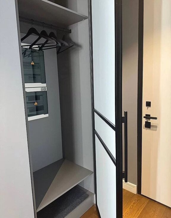Планировка: функциональная кухня-гостиная 23 м², спальня 14 м² с системой хранения, прихожия со встроенным шкафом, санузел.