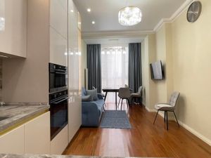 Предлагается прекрасная 2-х комнатная квартира с индивидуальной планировкой. В квартире сделан хороший евроремонт. Имеется все необходимо для комфортной жизни пары или пары с ребенком. Квартира зонирована на две комнаты: гостиная со спальным местом, спальня с полуторной кроватью и организована рабочая зона на утпеленной лоджии.