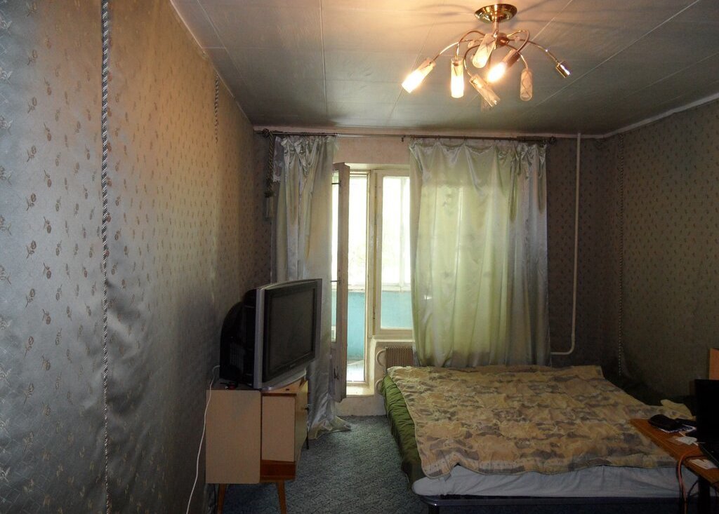 Квартира расположена на первом этаже девятиэтажного панельного дома, построенного в 1977 году. В доме имеется мусоропровод и пассажирский лифт. Жилая площадь составляет 20 квадратных метров, комнаты изолированы. В комнате установлена ортопедическая двуспальная латексная кровать, кресло кровать, шкаф купе, шкаф, письменный стол, тумба под телевизор.