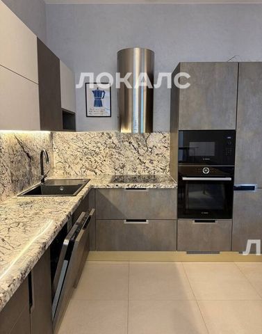 На просторной кухне установлена столешница и фартук из натурального гранита. Приятным дополнением является барная стойка из гранита за которой можно приятно проводить время с видом на город с высоты 21-го этажа.