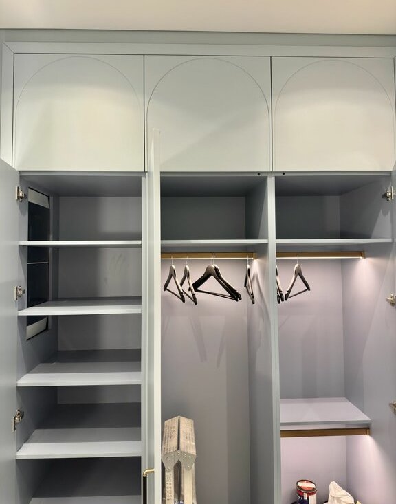 Матрас Энлейв 160x200 , встроенный большой шкаф гардеробный , тумба, Письменный стол USTAS, Потолочная люстра Eurosvet, Электрокарнизы Dauerhaft, Шкаф корпусный встроенный Пуф со спинкой