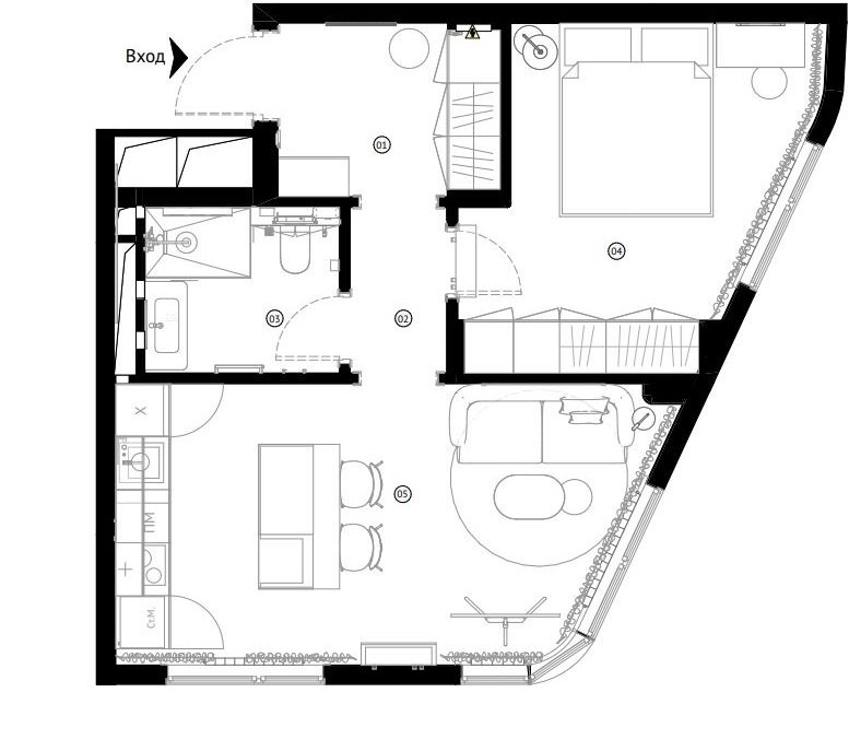 Планировка: просторная кухня – гостиная и отдельно спальня , холл(коридор), совмещенный сан.узел с душевой