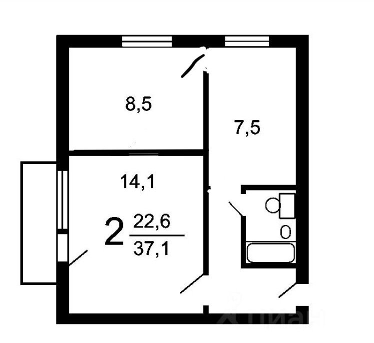 2-комнатная квартира: Москва, проезд Шокальского, 23 (38 м²)