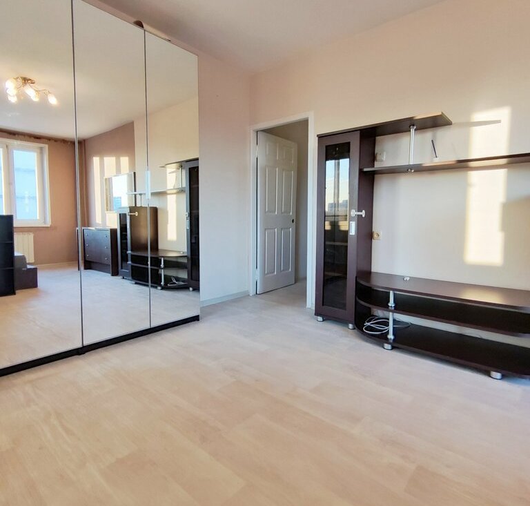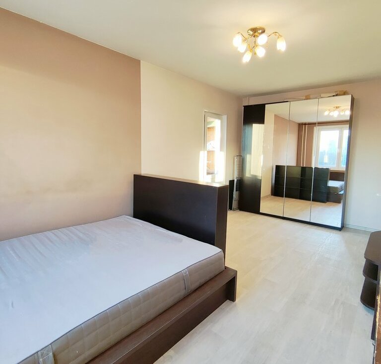 Просторная квартира с хорошей мебелью и бытовой техникой. Двуспальная кровать с матрасом, новый наматрасник, большой зеркальный шкаф для одежды, компьютерный стол, стиральная машина, двухкамерный холодильник.