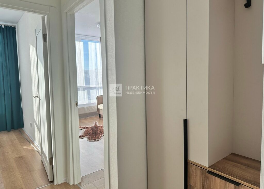 Натяжные потолки, полы ламинат, система хранения в спальне и в прихожей.