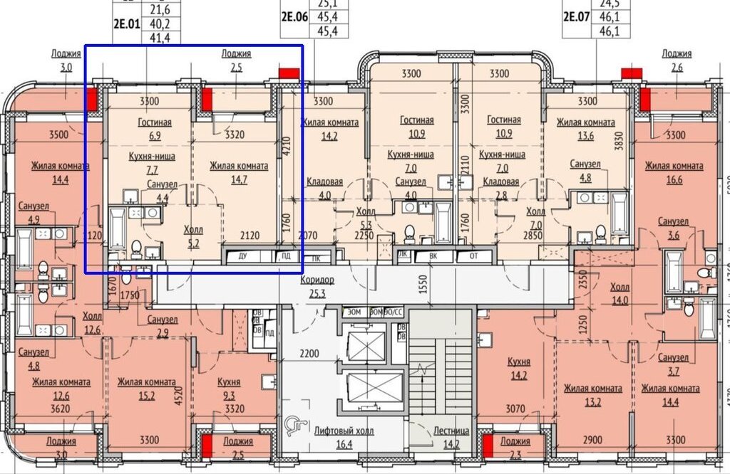 Кухня 7,7 кв.м, гостиная 6,9 кв.м.