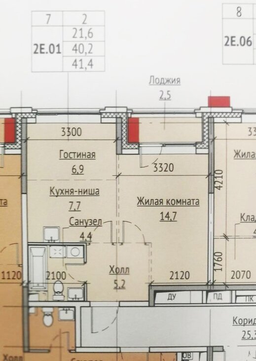 Площадь квартиры 40,2 м2