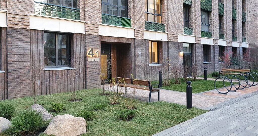 Прямой выход на внутренний двор комплекса. Внутренний двор благоустроен (детские площадки, зоны пикника и отдыха). Обустроен открытый доступ к набережной. В комплексе ведется видеонаблюдение и работает система контроля доступа на внутреннюю территорию. В ЖК присутствует подземный паркинг и кладовые. Первый этаж занят коммерческими помещениями + якорный продуктовый магазин. На территории ЖК детский сад, планируется постройка школы. В шаговой доступности м. Технопарк (6-7 минут), ТЦ «Мегаполис» (8-9 минут), Парк Остров мечты (15-18 минут). В 10-15 минут на автомобиле «Леруа Мерлен» и ТЦ «Ривьера». Район перспективный с точки зрения развития, рядом Южный речной порт, несколько бизнес-центров и ЖК. На стороне завода ЗИЛ застраивается территория и будет обустроен парк. Построен автомобильный мост в сторону центра, в сторону ЗилАрт и ТТК.