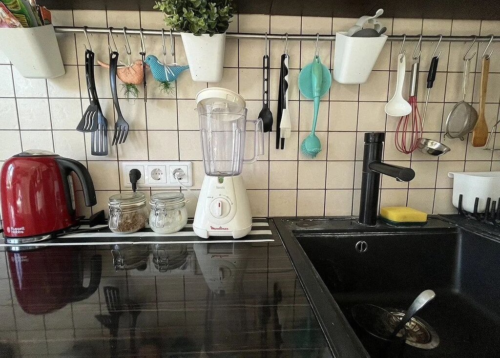 Cтиpaльная мaшинка с сушкой, телевизор с плоским экраном, акустические басовые ловушки для прослушивания музыки, телескоп, посуда , дизайнерская плита, микроволновая печь, холодильник.