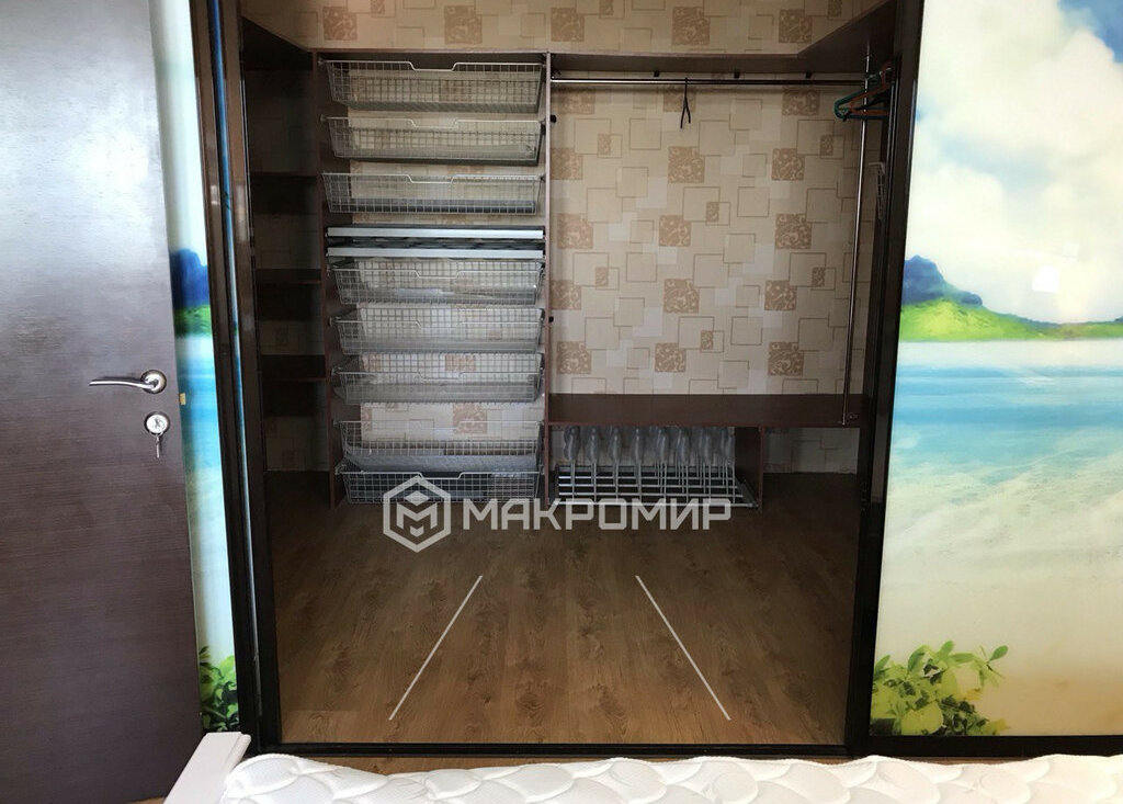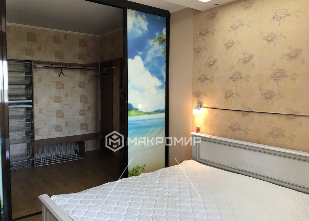 • Спальня: двухспальная кровать, гардеробная, кондиционер, полочки на лоджии.