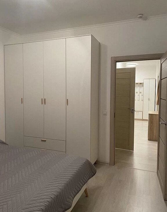 4. 2 изолированные комнаты, в одной из которых кровать и большой шкаф, а в другой - раскладывающийся диван и комфортное рабочее место