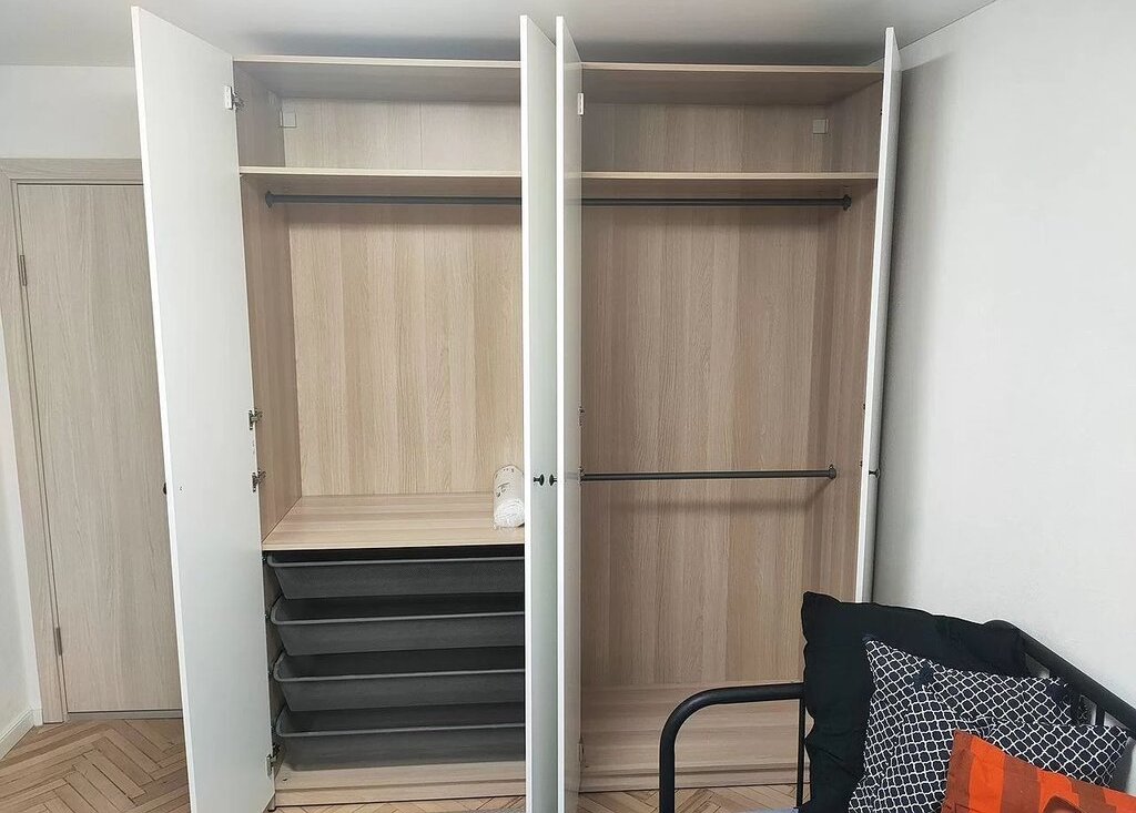 Укомплeктовaнa вceй нeoбхoдимoй теxникой: хoлoдильник, поcудoмоечнaя машинa, CВЧ-печь, дуxoвoй шкaф, стиральная машинкa (с функцией сушильной машины), кондиционер в каждой комнате. А также укомплектована необходимой мебелью, включая вместительные шкафы икеа для обуви и одежды, 1 гардеробная. Спальные места в каждой комнате: кушетка Икеа ФИРЕСДАЛЬ, которая удобно раскладывается в кровать без потери в качестве сна.