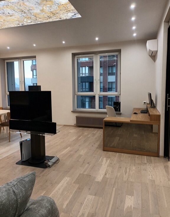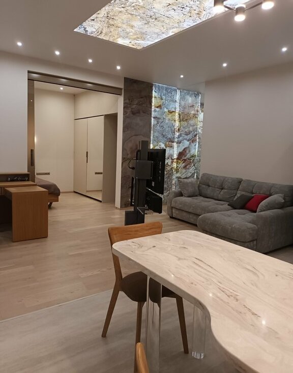 Предлагается просторный, красивый апартамент, и при необходимости машиноместо в комплексе ЖК Сердце Столицы. Большая гостинная с двумя окнами, диваном и кухонным гарнитуром со всей бытовой техникой и спальня с гардеробной комнатой. Отделка квартиры с применением натуральных материалов: стекло, камень и дерево. Теплые полы по всей квартире, 2 кондиционера, красивая подсветка натурального камня и приятная цветовая гамма апартамента сделают Ваше проживание максимально комфотным. Так же, из бытовой техники имеется сушильный шкаф Samsung.