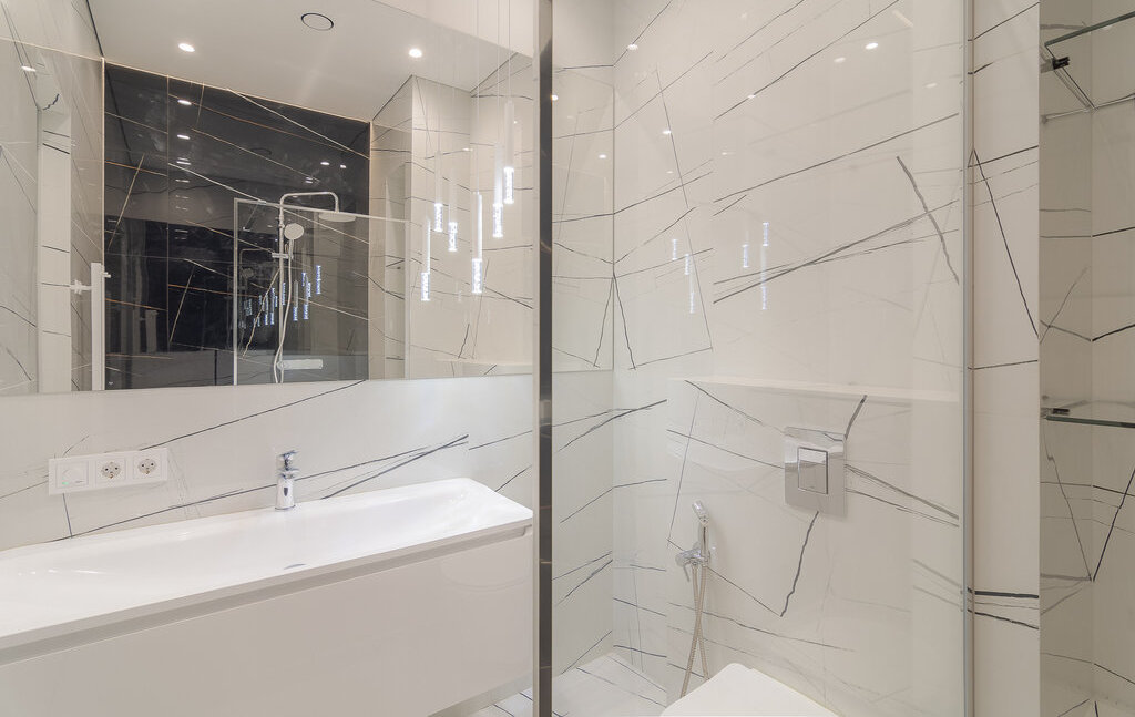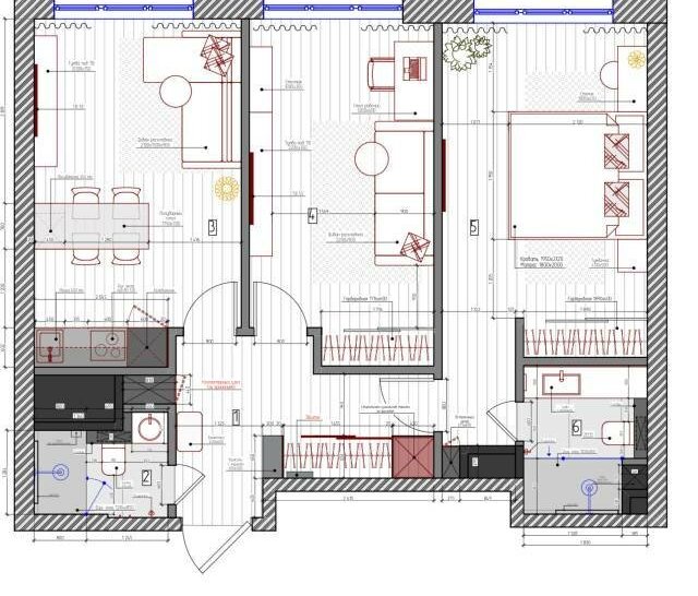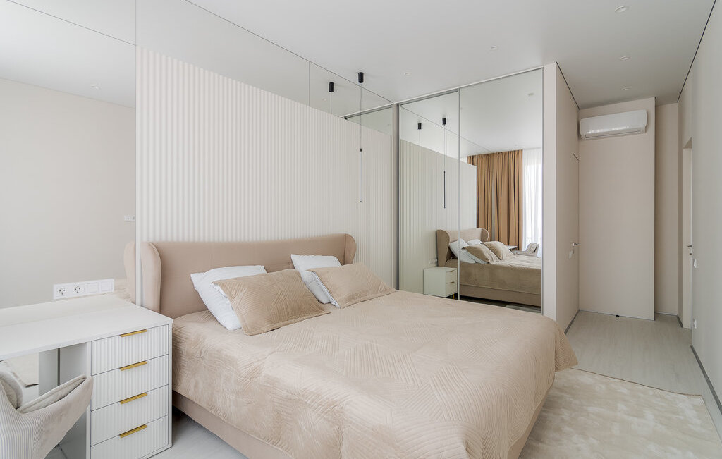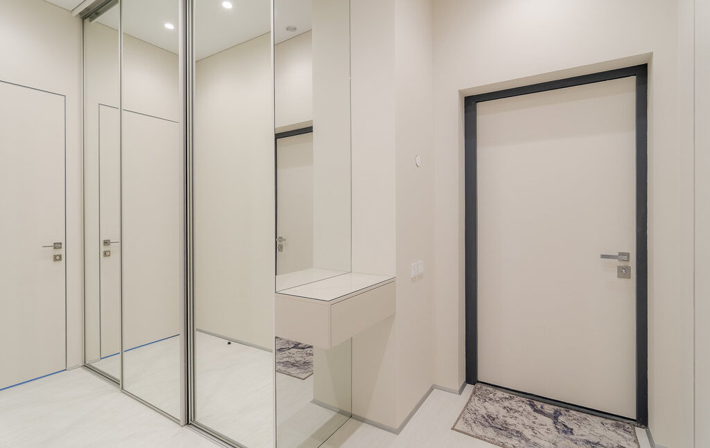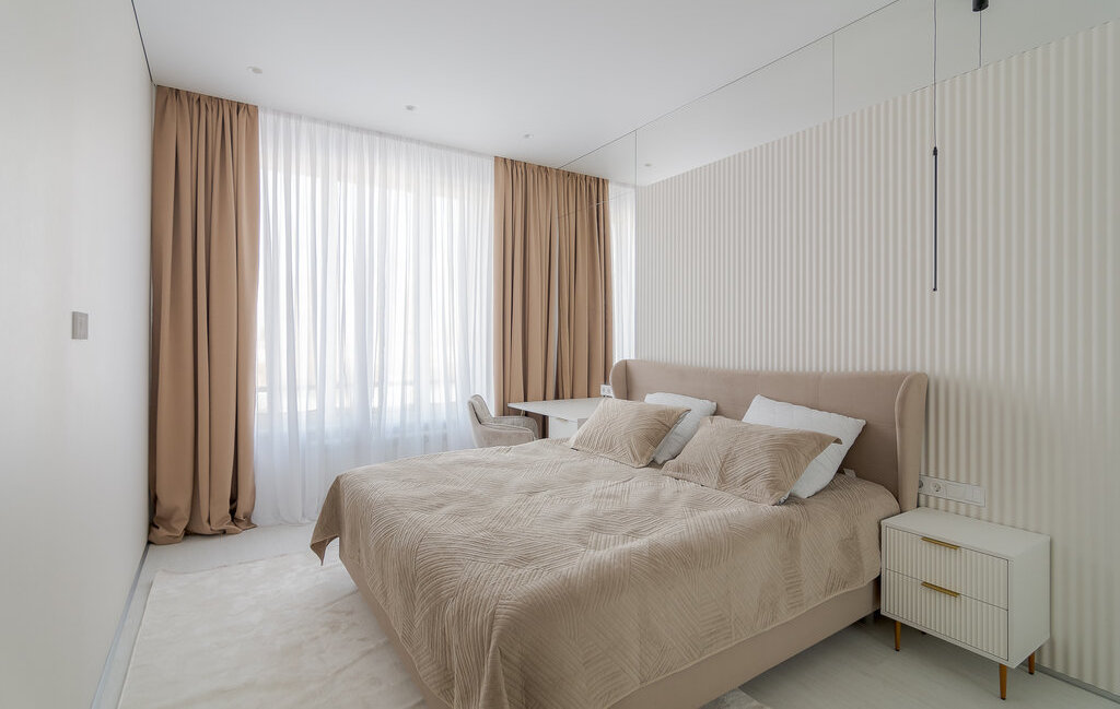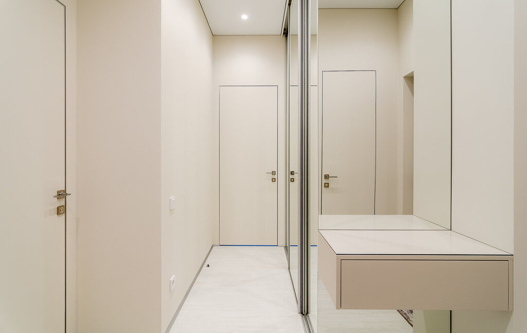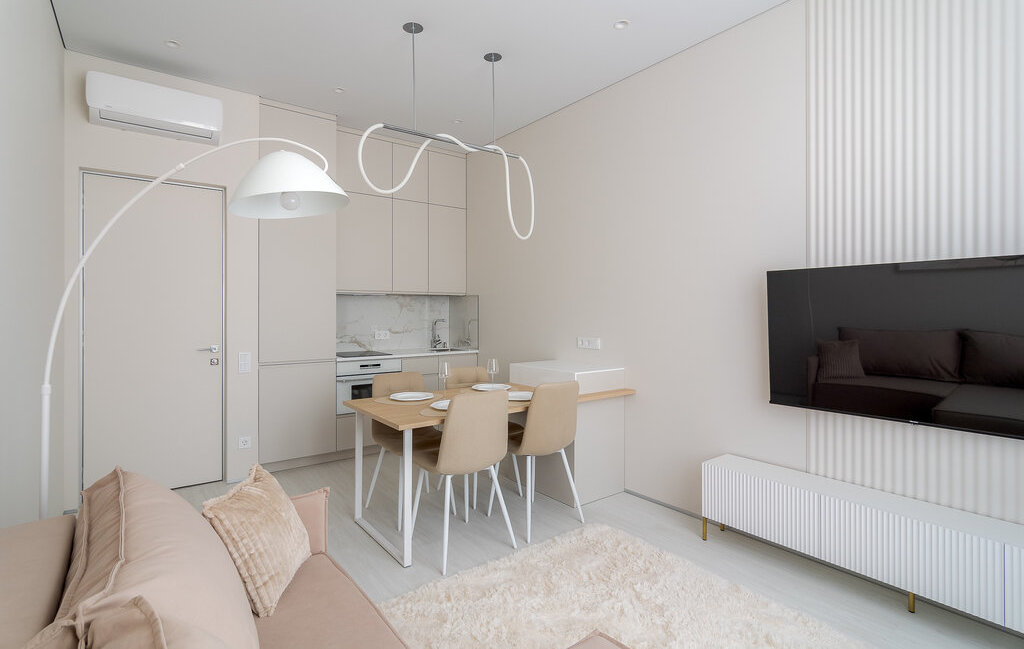 Встроенная техника: холодильник, духовой шкаф с СВЧ, варочная поверхность, стирально-сушильная и посудомоечная машина.