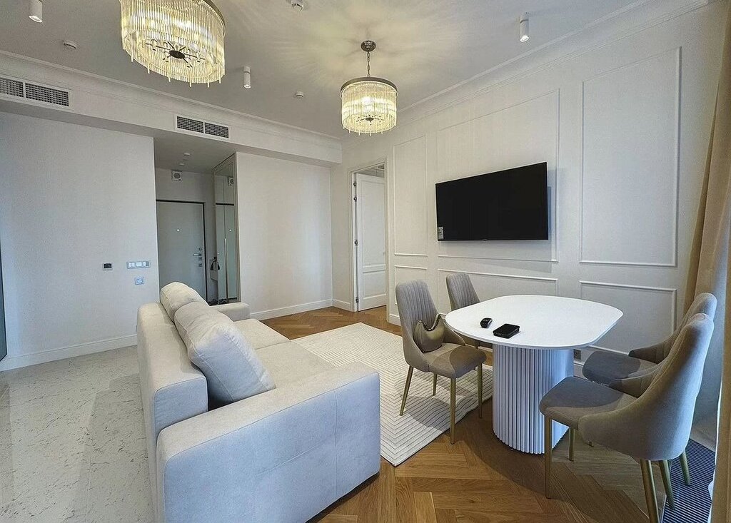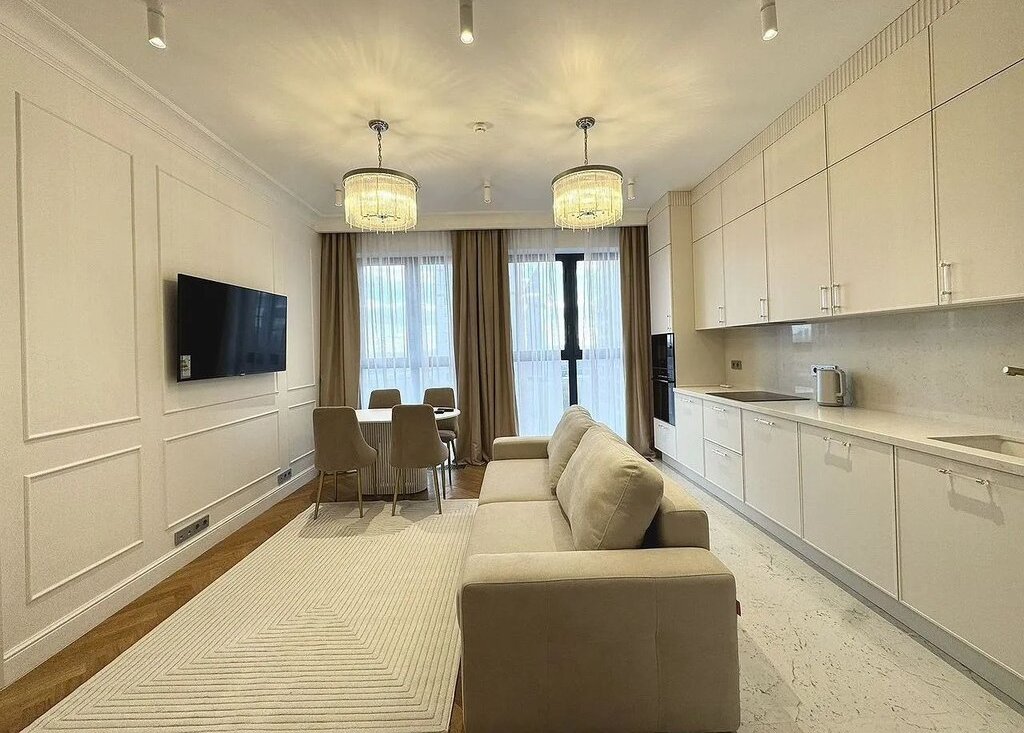 Сдется новая , уютная квартира в жк Сидней сити на длительный срок. Кухня совмещена с гостиной,спальня, гардеробная, санузел. Квартира оснащена мебелью и всей необходимой техникой.