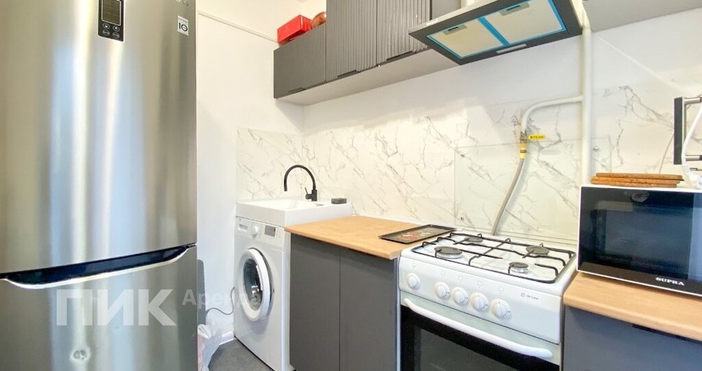 Квартира оснащена кухонным гарнитуром, всей необходимой мебелью и бытовой техникой. Есть: