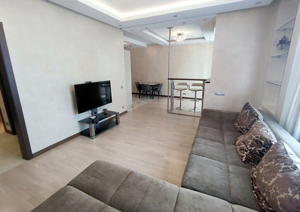 Дом расположен рядом с парком Красная Пресня и Красногвардейскими прудами.До набережной Москва-реки 5..10 мин пешком. Огороженная, охраняемая территория. Въезд по пропускам. Квартира Укомплектована необходимой мебелью и бытовой техникой - варочная панель, духовой шкаф, посудомоечная машина, холодильник, СВЧ - печь. кондиционер. Санузел совмещен - установлена ванная с гидромассажем.