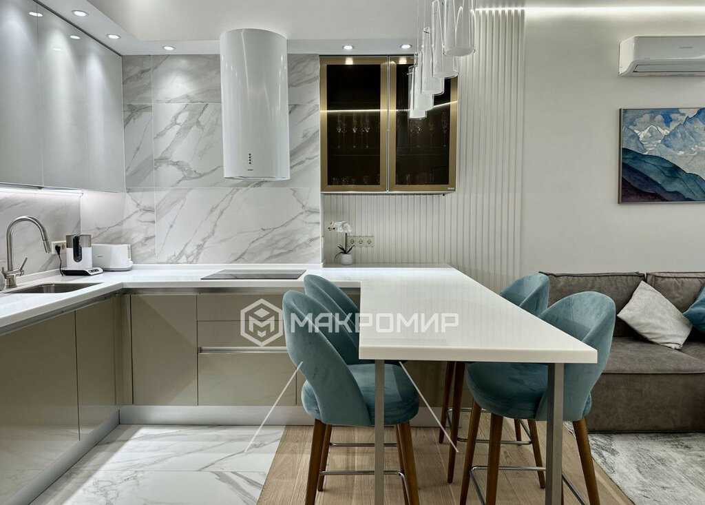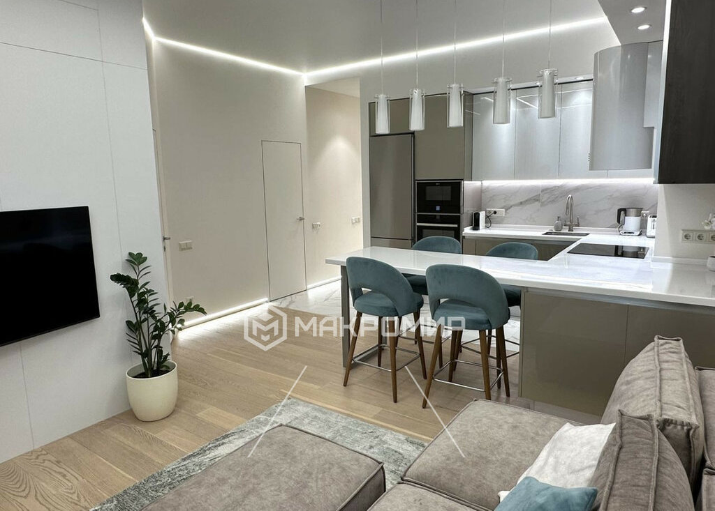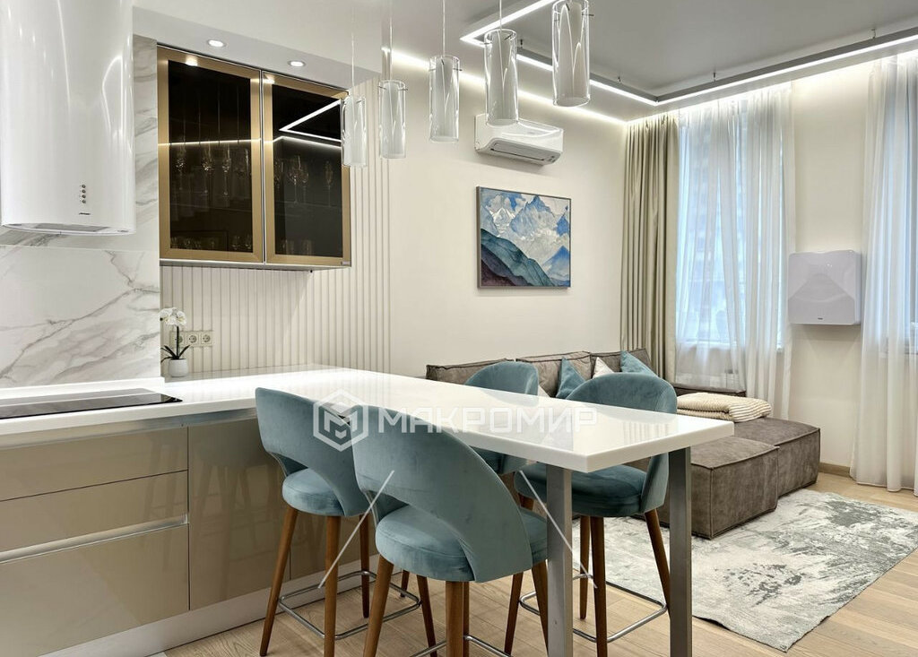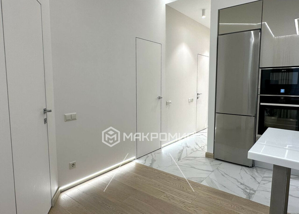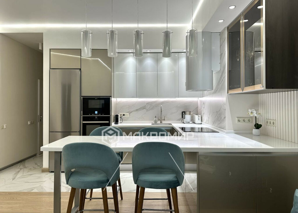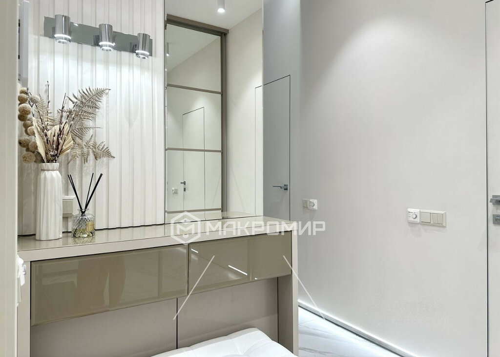 В квартире дизайнерский ремонт. Каждая деталь продумана. Пространство ощущается гармонично и легко.